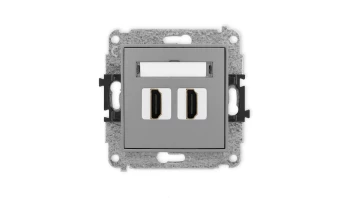 DECO Mechanizm gniazda podwójnego HDMI 2.1, 8K, bez pola opisowego szary mat 27DHDMIBO-6