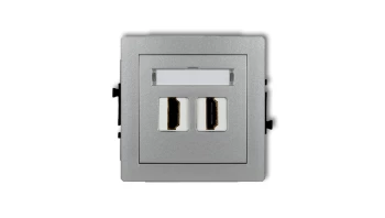 MINI Mechanizm gniazda multimedialnego podwójnego bez modułu (standard Keystone) srebrny metalik 7MGM-2P