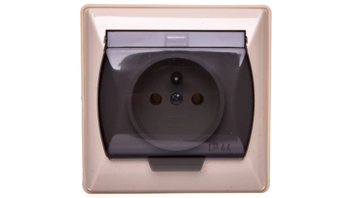 AKCENT Gniazdo bryzgoszczelne z/u IP44 klapka przezroczysta beżowe GPH-1AZ/01/d