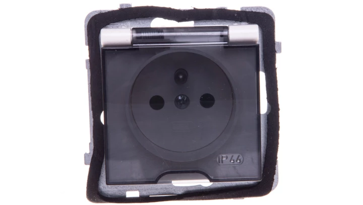 AS Gniazdo bryzgoszczelne z/u IP44 z przesłonami klapka przezroczysta ecru GPH-1GZP/m/27/d