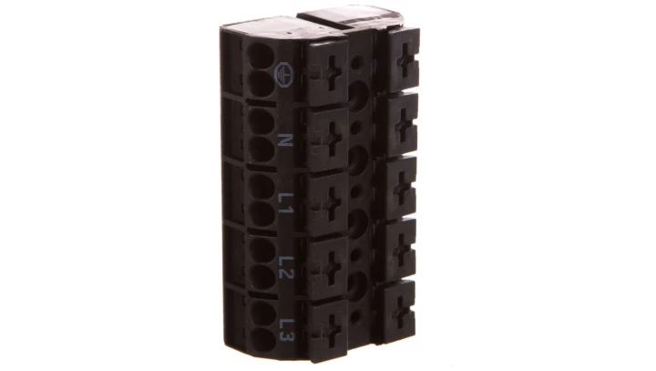 Blok zasilający 5-biegunowy czarny nadruk PE-N-L1-L2-L3 862-1505/999-950 /200szt./