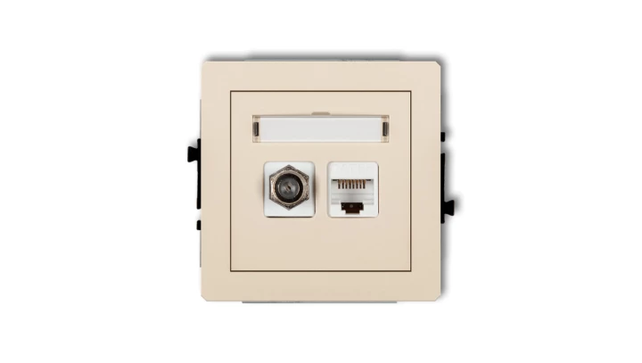 DECO Mechanizm gniazda antenowego poj. typu F (SAT) + gniazda komp. poj. 1xRJ45, kat. 6, 8-stykowy beżowy 1DGFK-3
