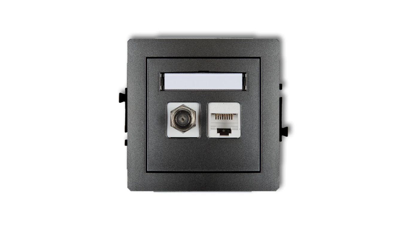 DECO Mechanizm gniazda antenowego poj. typu F (SAT) + gniazda komp. poj. 1xRJ45, kat. 6 ekranowane, 8-stykowy grafitowy 11DGFK-5