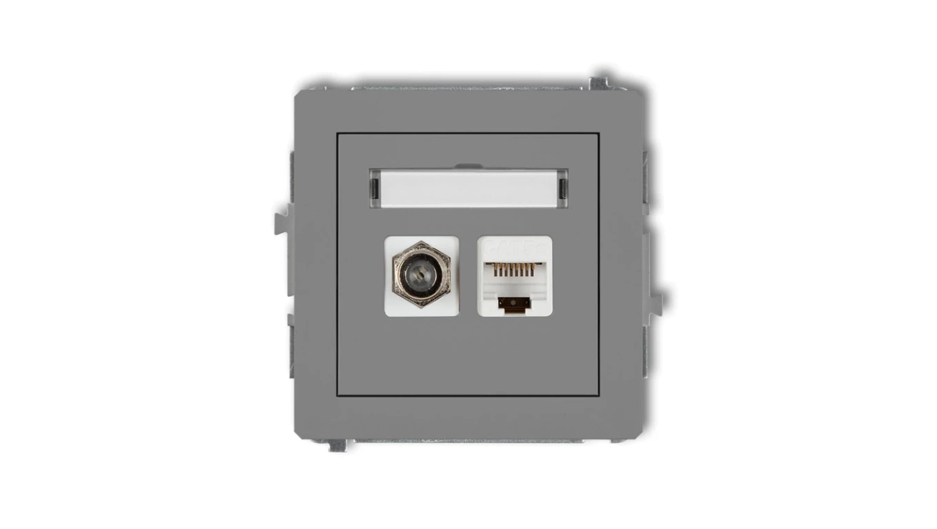 DECO Mechanizm gniazda antenowego poj. typu F (SAT) + gniazda komp. poj. 1xRJ45, kat. 6 ekranowane, 8-stykowy szary mat 27DGFK-5