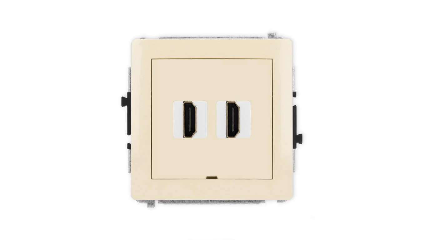 DECO Mechanizm gniazda podwójnego HDMI 2.1, 8K, bez pola opisowego beżowy 1DHDMIBO-6
