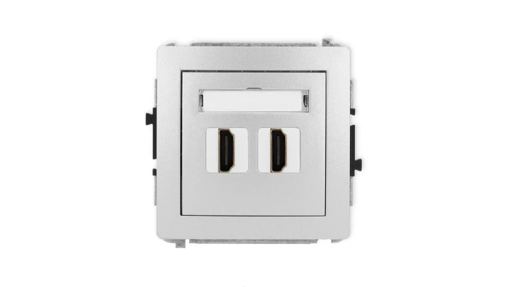 DECO Mechanizm gniazda podwójnego HDMI 2.1, 8K srebrny metalik 7DHDMI-6