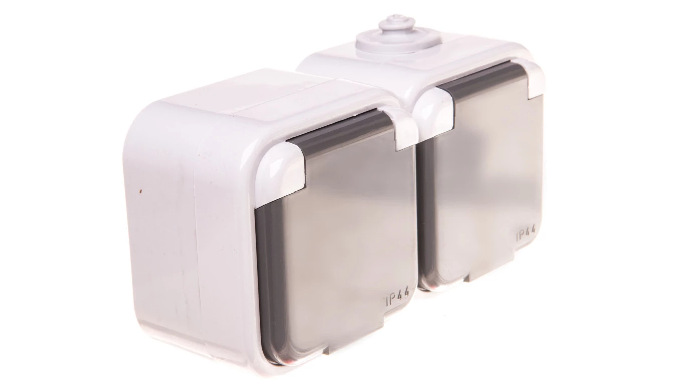DELFINA Gniazdo hermetyczne podwójne z/u IP44 klapka szara GNH-2DZ/30/w