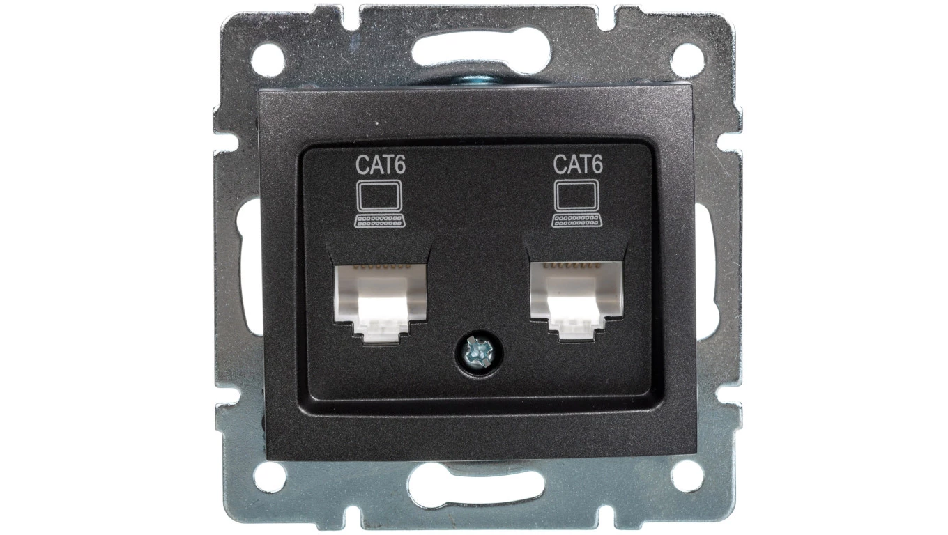 DOMO Gniazdo komputerowe podwójne niezależne 2x RJ45Cat 6 Jack grafit 011420041 24933