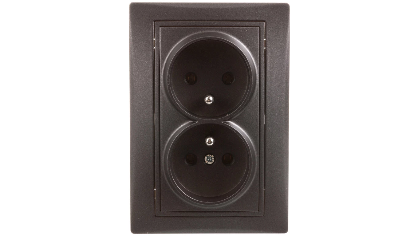 DOMO Gniazdo podwójne kompletne śrubowe 16A 250V grafit 011261141 24916