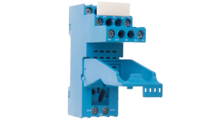 Gniazdo do serii 55.32/85.02 modułów 99.80, zaciski śrubowe, montaż na szynę DIN 35mm, (klip plastikowy) 94.92.3SPA