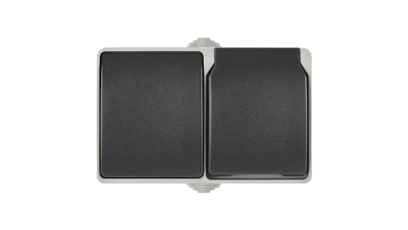 Gniazdo natynkowe + wył.schodowy IP44 szaro-czarne EMOS A1397.4