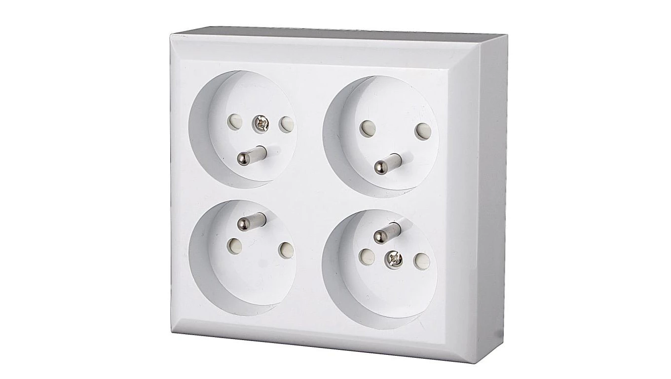 Gniazdo poczwórne, czterokrotne natynkowe z uziemieniem, IP20, białe, GAO 20457