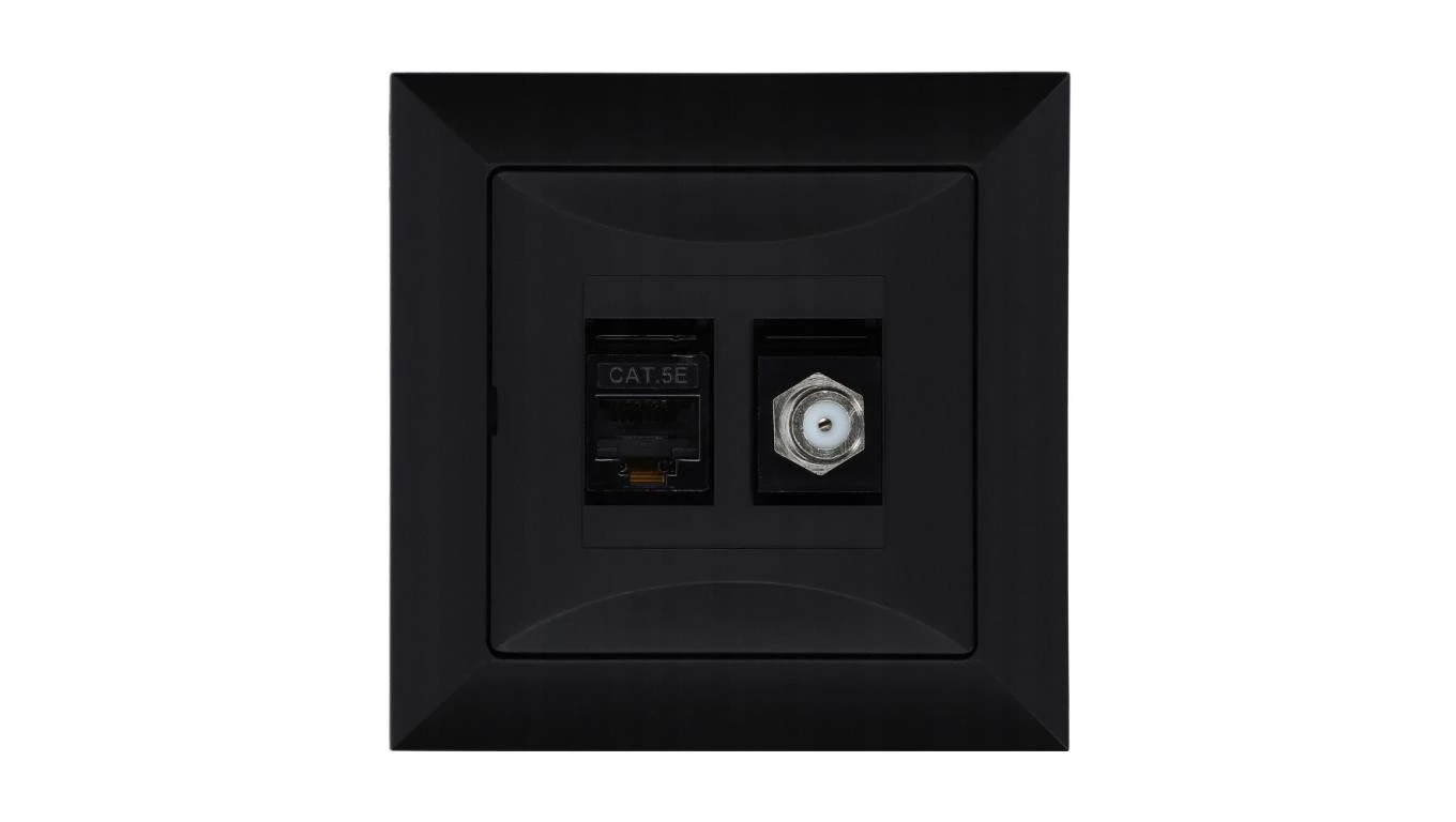 Gniazdo podtynkowe typu F + gn. RJ-45 Pola czarny, 33205