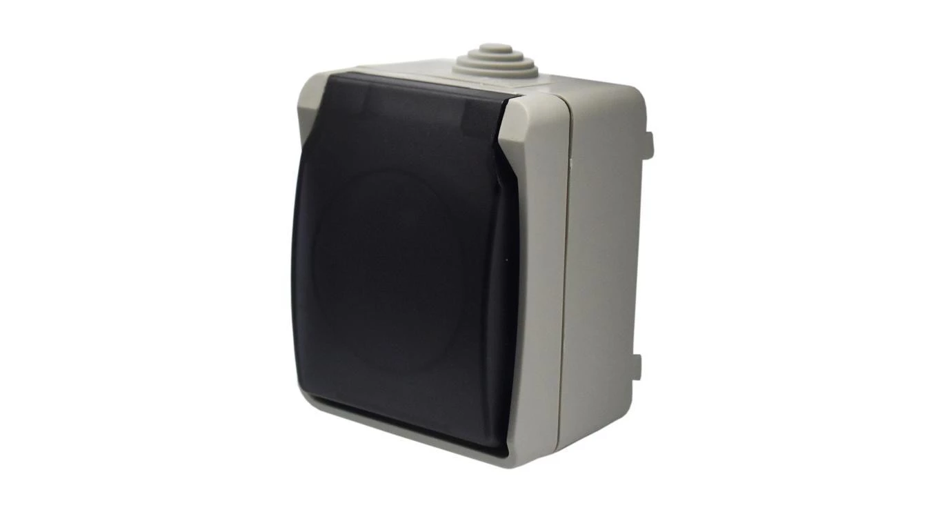 Gniazdo pojedyncze z uziemieniem natynkowe z klapką dymną Aqua Plus IP54 szaro grafitowe / 40118
