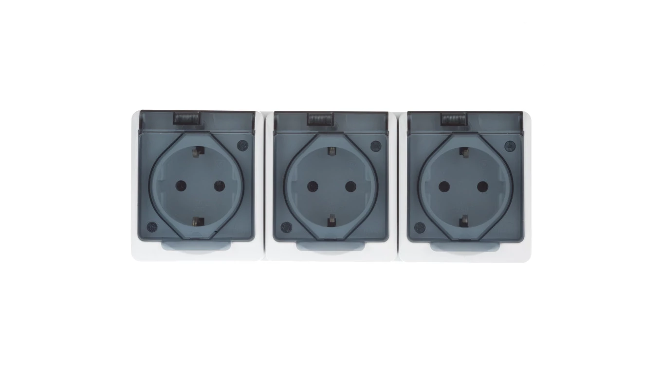 Hermes Gniazdo hermetyczne potrójne z/u Schuko z klapką dymną 16A IP44 białe 0326-01