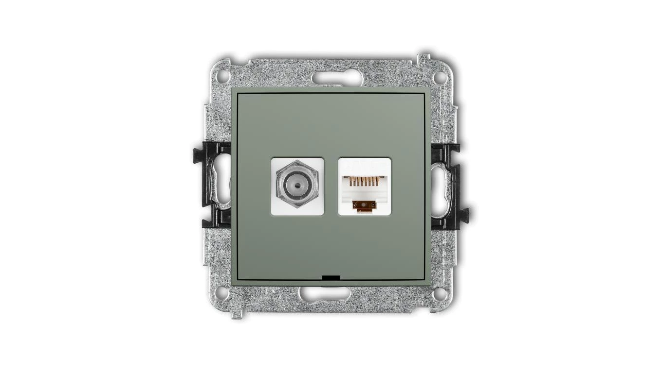 ICON Mechanizm gniazda antenowego F (SAT) + gniazda komp. poj. 1xRJ45, kat. 5e, 8-stykowy, bez opisu szałwiowy 61IGFKBO-1