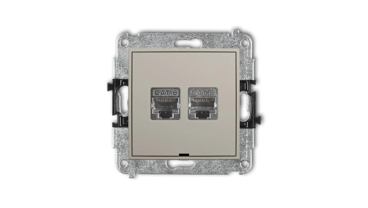 ICON Mechanizm gniazda komputerowego podwójnego 2xRJ45, kat. 6, ekranowany, 8-stykowy, bez pola opisowego taupe 60IGKBO-6