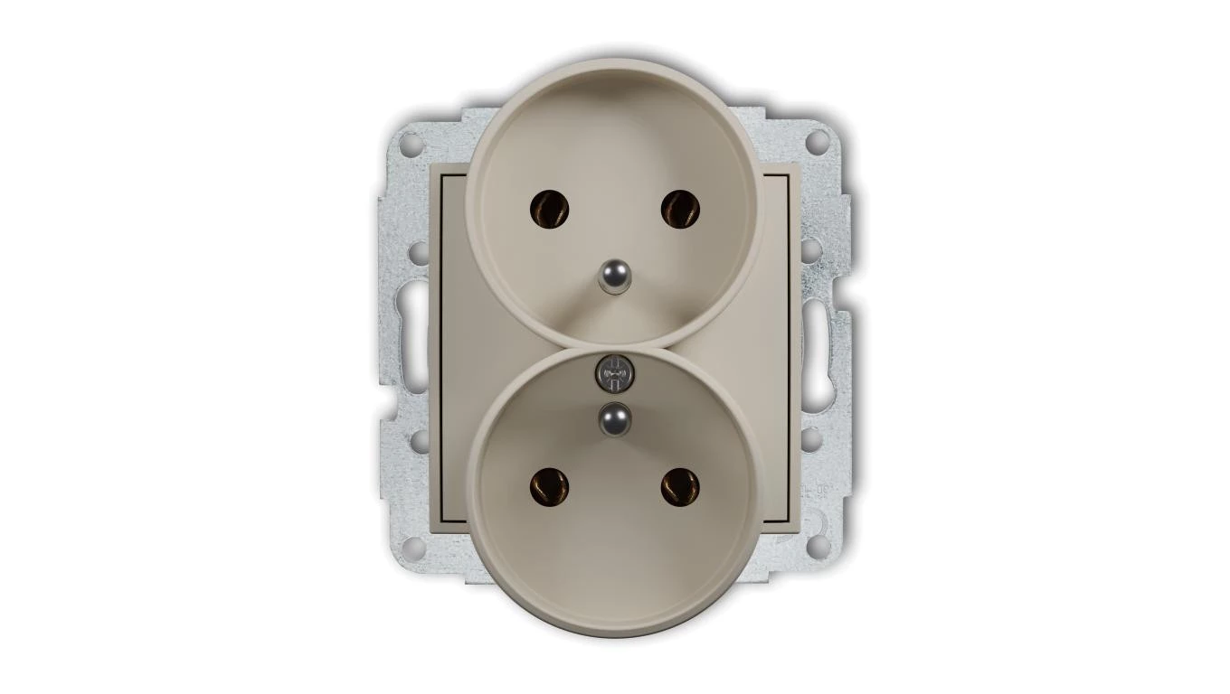 ICON Mechanizm gniazda podwójnego do ramki z uziemieniem 2x(2P+Z) (bez przesłon torów prądowych) taupe 60IGPR-2z