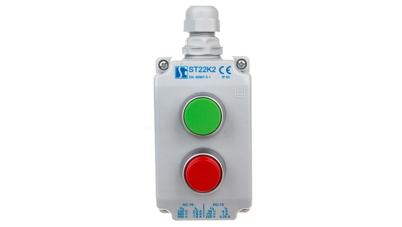 Kaseta sterownicza 2-otworowa zielony/czerwony 1Z 1R szara IP65 1x dławnica szara M20 ST22K2\02-1