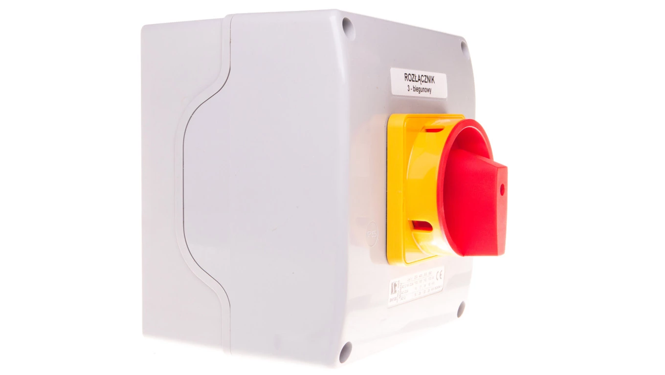 Łącznik krzywkowy 0-1 3P 100A w obudowie OB18 z czołem zamykanym żółto/czerwonym SK100-2.8211OB18ZC