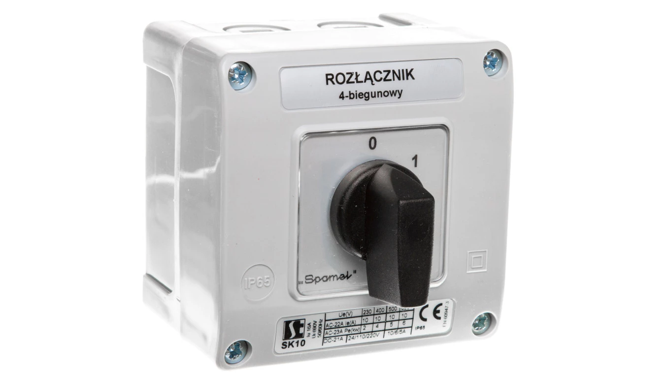Łącznik krzywkowy 0-1 4P 10A w obudowie pokrętło czarne SK10-2.8210OB11