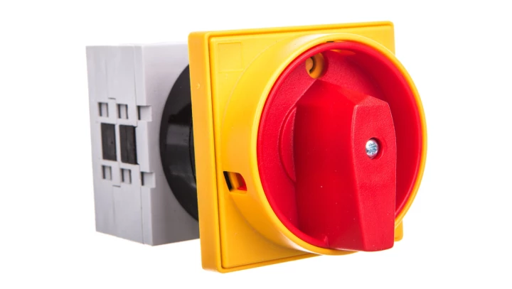 Łącznik krzywkowy 0-1 4P 32A do wbudowania z pokrętłem żółto/czerwonym blokowany kłódką GX3292U25