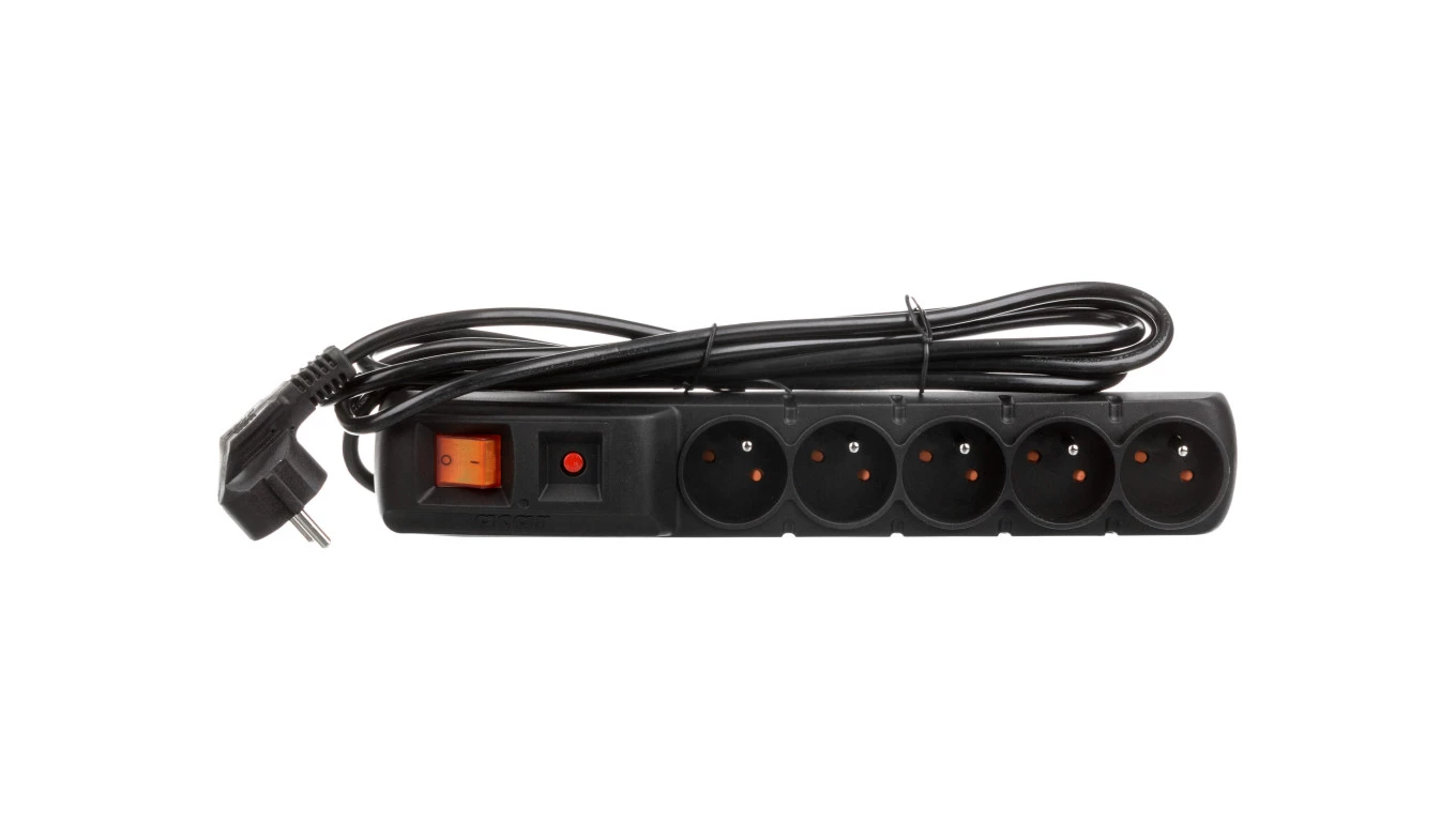 Listwa zasilająca 19 cali 3m 5 gniazd 2P+Z, wyłącznik + bezpiecznik czarna 19-0043C