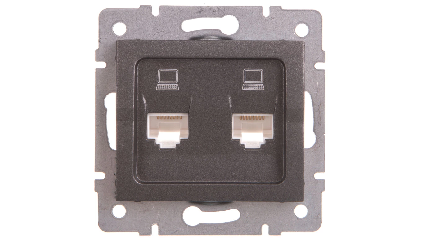 LOGI Gniazdo komputerowe podwójne niezależne (2x RJ45Cat 5e Jack) Grafit 021410041 25287