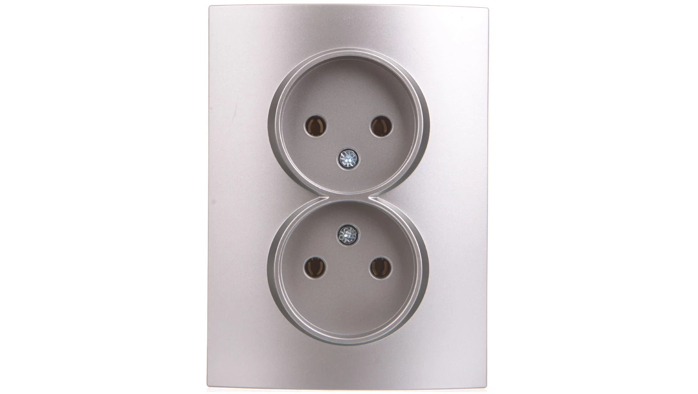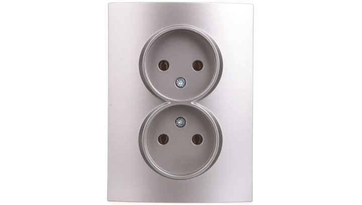 LOGI Gniazdo podwójne 2x2P kompletne śrubowe 16A 250V Srebrny 25214