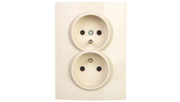 LOGI Gniazdo podwójne kompletne ochrona styków śrubowy Kremowy 16A 250V 021260103 25152