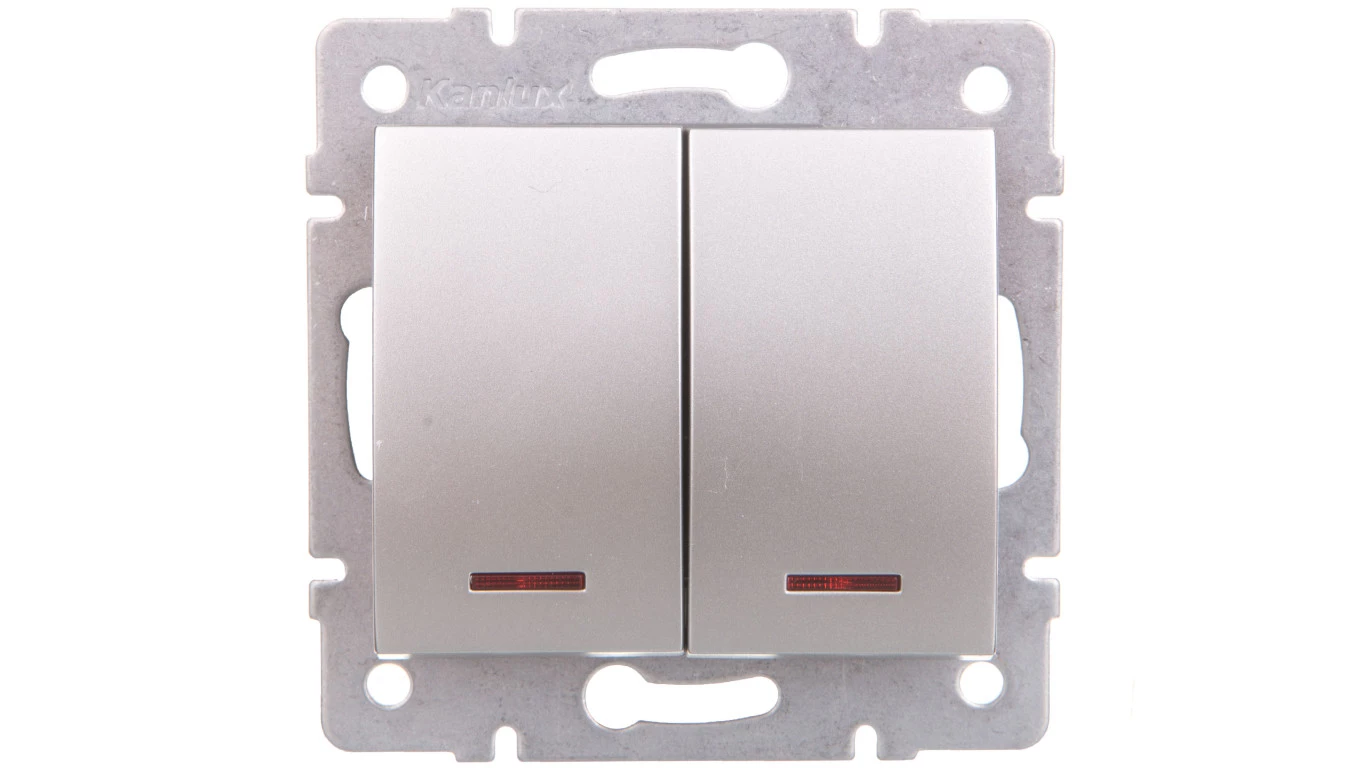 LOGI Łącznik zwierny podwójny LED śrubowy 10AX 250V srebrny 021023143 25189