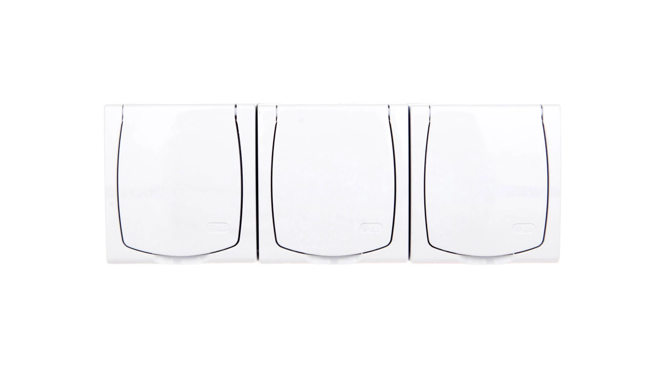 MADERA Gniazdo hermetyczne potrójne z/u Schuko IP44 z przesłonami klapka biała GNH-3NSP/00/w