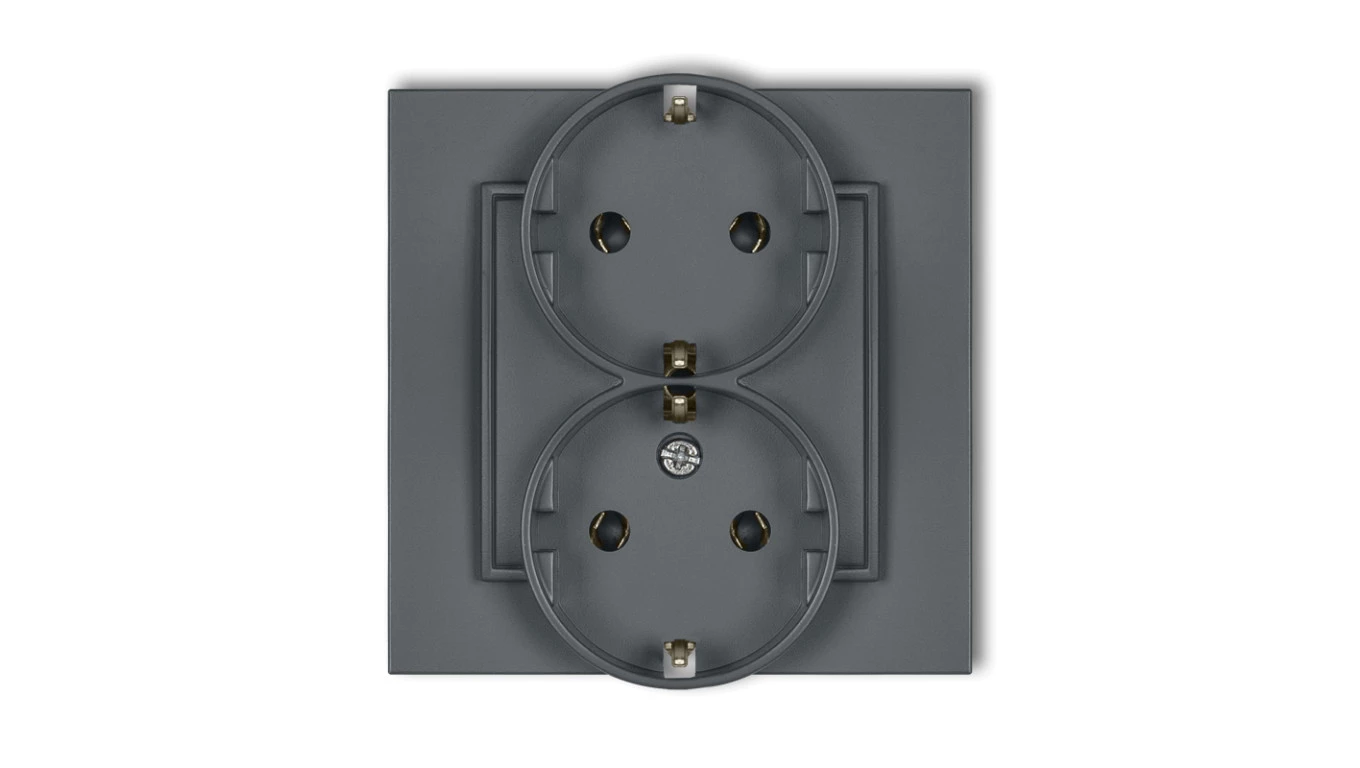 MINI Gniazdo podwójne z uziemieniem SCHUKO 2x(2P+Z) (bez przesłon torów prądowych) grafitowy mat 28MGP-2s