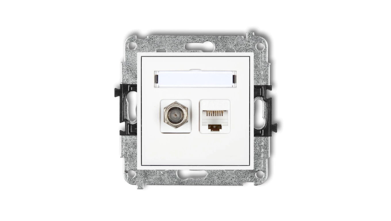 MINI Mechanizm gniazda antenowego poj. typu F (SAT) + gniazda komp. poj. 1xRJ45, kat. 6 ekranowane, 8-stykowy biały MGFK-5