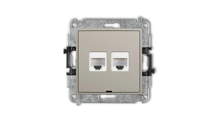 MINI Mechanizm gniazda komputerowego podwójnego 2xRJ45, kat. 5e, 8-stykowy, bez pola opisowego taupe 60MGKBO-2
