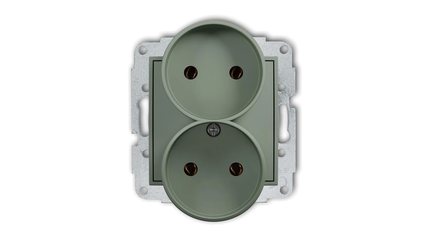 MINI Mechanizm gniazda podwójnego do ramki bez uziemienia 2x2P (bez przesłon torów prądowych) szałwiowy 61MGPR-2