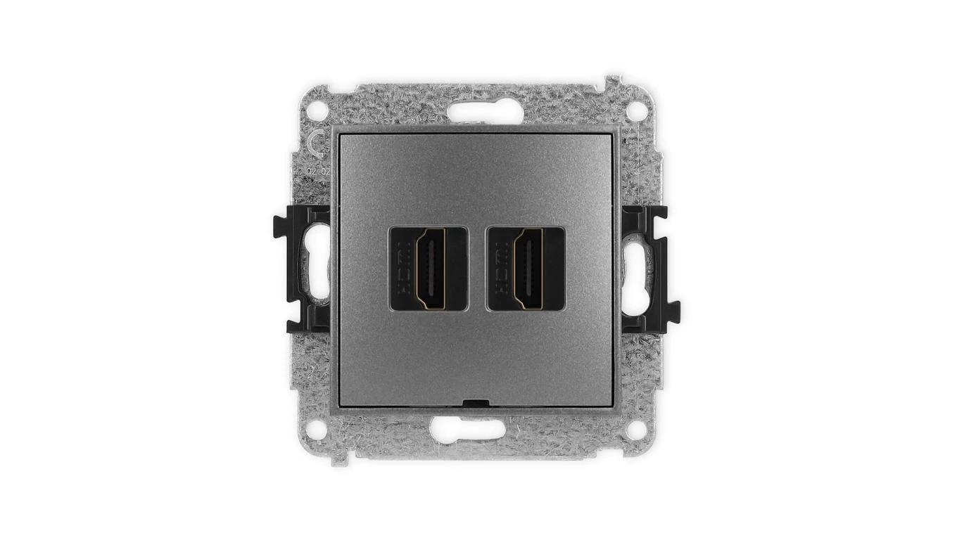 MINI Mechanizm gniazda podwójnego HDMI 2.1, 8K, bez pola opisowego grafitowy 11MHDMIBO-6