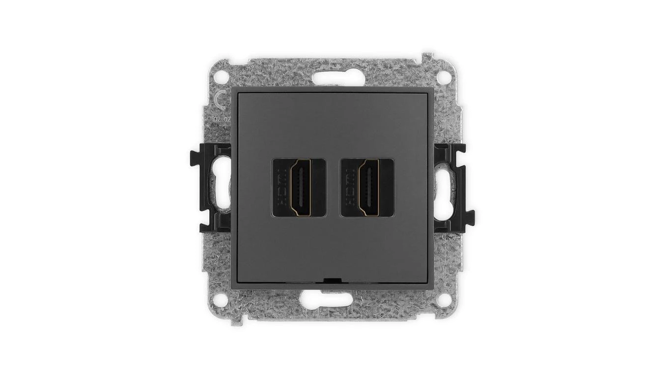 MINI Mechanizm gniazda podwójnego HDMI 2.1, 8K, bez pola opisowego grafitowy mat 28MHDMIBO-6