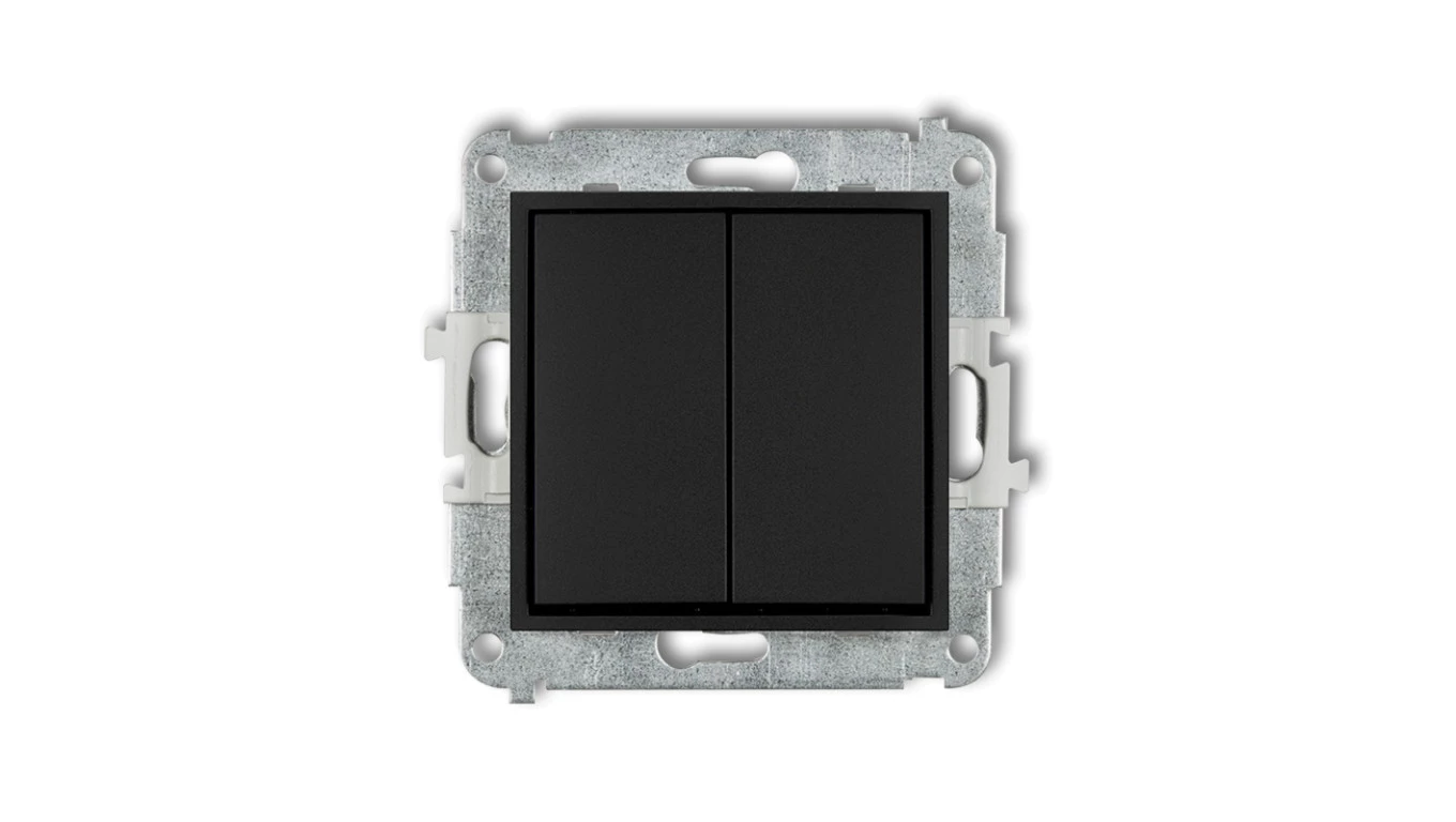 MINI Mechanizm łącznika jednobiegunowego ze schodowym (dwa klawisze bez piktogramów, osobne zasilanie) czarny mat 12MWP-10.21
