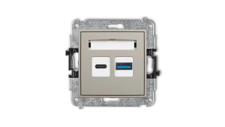 MINI Mechanizm ładowarki USB podwójnej USB C + USB A, 20W max. taupe 60MCUSB-8