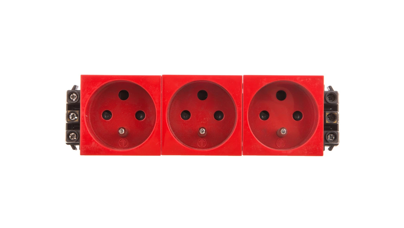 MOSAIC Gniazdo potrójne z/u z blokadą czerwone 077343