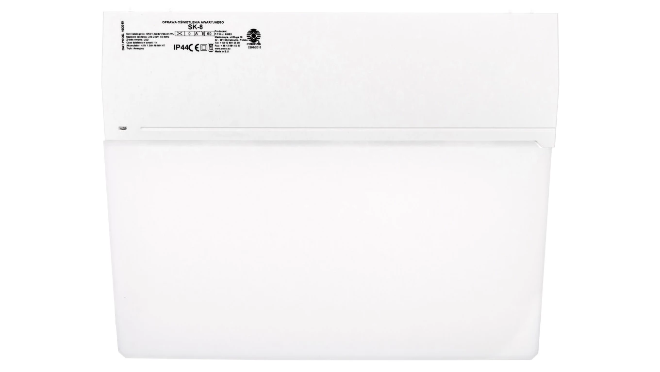 Oprawa awaryjna SK-8 LED 1,2W 1h jednozadaniowa AT biała / opal SK8/1,2W/B/1/SE/AT/WL