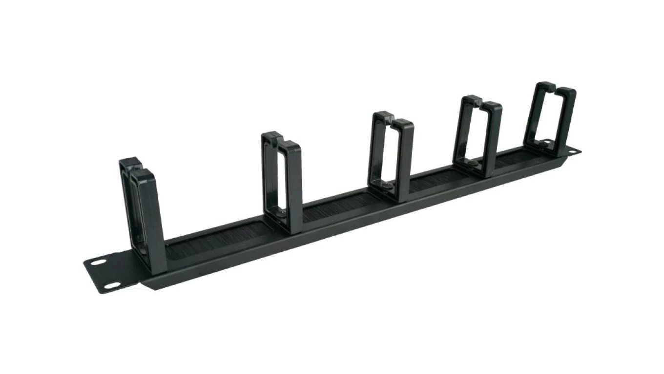 Organizator kabli 1U 19 z przepustem szczotkowym, 5 plastikowych uchwytów, czarny PK048