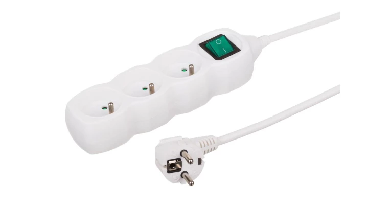 Przedłużacz 3-gniazdowy, 3m biały, z wyłącznikiem, 3x1,0mm OWY 35330