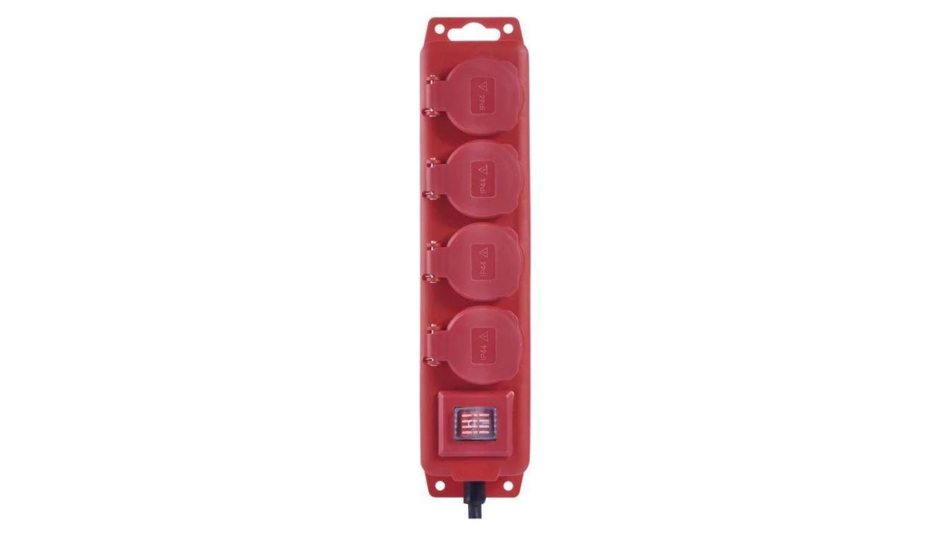 Przedłużacz z wyłącz. 4 gn 10m 15mm IP44 guma czerwony P14101