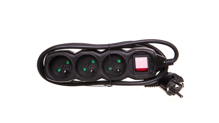Przedłużacz z wyłącznikiem 3-gniazda z/u 1,5m /H05VV-F 3G1/ czarny PC1311