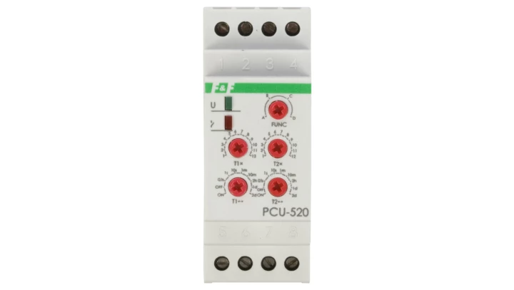 Przekaźnik czasowy 2P 8A 0,1sek-576h 230V AC wielofunkcyjny PCU-520