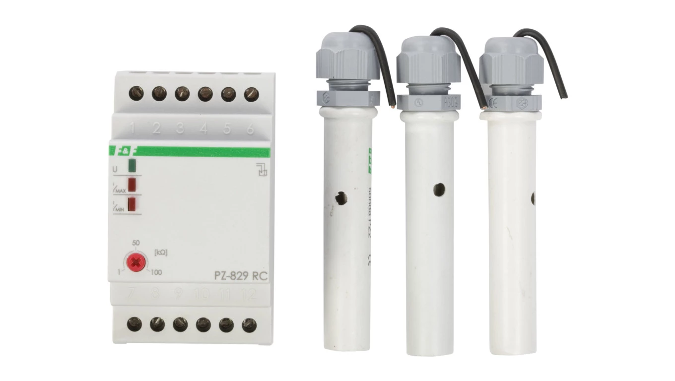 Przekaźnik kontroli poziomu cieczy 16A 2P 1-100kOhm z regulacją czułości PZ-829RC