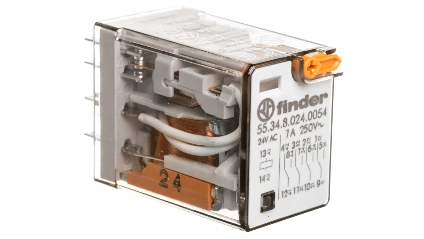Przekaźnik przemysłowy 4P 7A 24V AC przycisk testujący mechaniczny wskaźnik zadziałania AgNi 55.34.8.024.0054