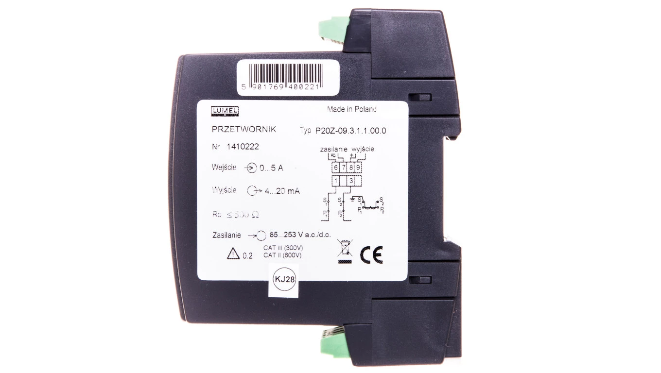 Przetwornik wejście AC wejście 0-5A wyjście 4-20mA zasilanie 85-253V AC/DC zaciski nierozłączne śrubowe bez atestu KJ P20Z 09311
